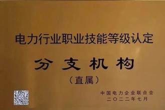 公司荣获由中国电力企业联合会认定的《电力行业职业技能等级认定直属分支机构》。