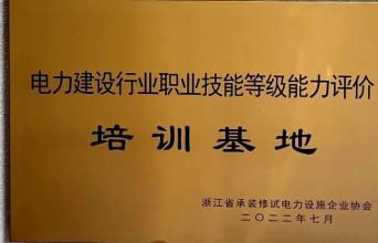 公司荣获由浙江省承装修试电力设施企业协会认定的《电力建设行业职业技能等级能力评价培训基地》。